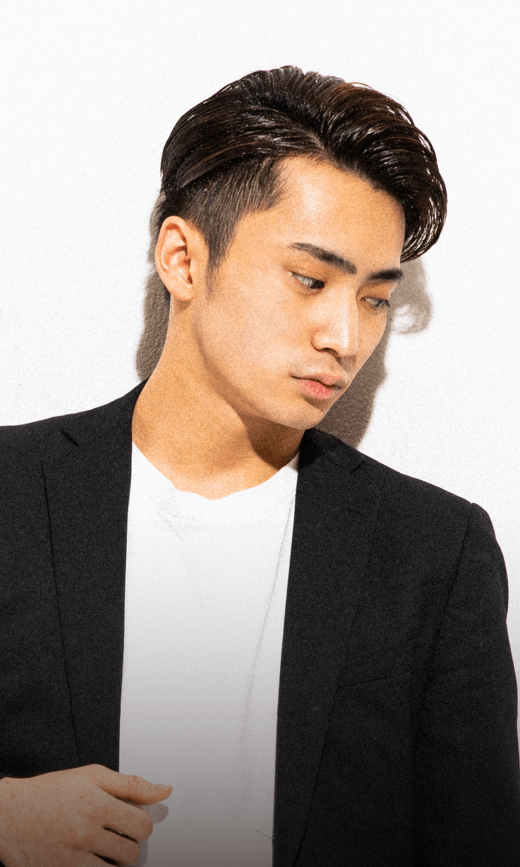 オールバックにするイメージで、後ろに流しながらポマードを塗布。なじませながらタイトな質感をキープする。